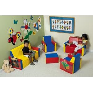 Product Description : Parlor Reading Center with multi-colors and clear-vue pockets to store books. Seat height 10". Ottoman 16" x 12" x 8"