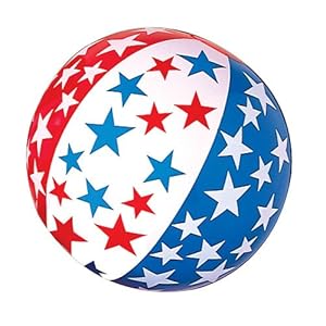 Product Description : This inflatable ball is ideal for any pool or beach party. The red, white, and blue beach balls features a star design on each panel. Size 16" Diam. U.S. Toy Exclusive!